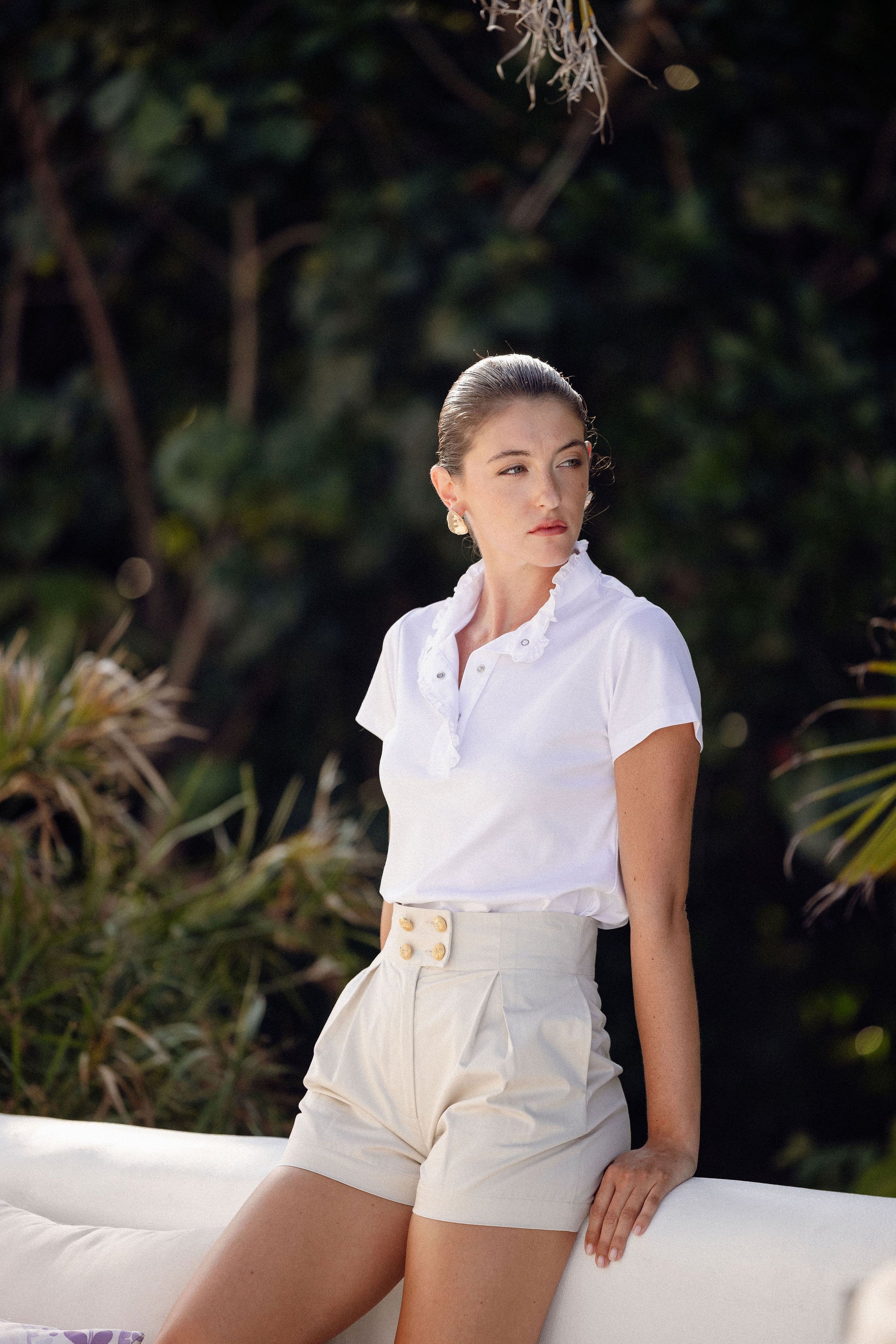 The refined Jessy Polo elevates casual sophistication with its premium cotton construction. This exquisite top transitions effortlessly from beachside resorts to everyday ensembles, embodying understated luxury and timeless elegance for the discerning wearer.