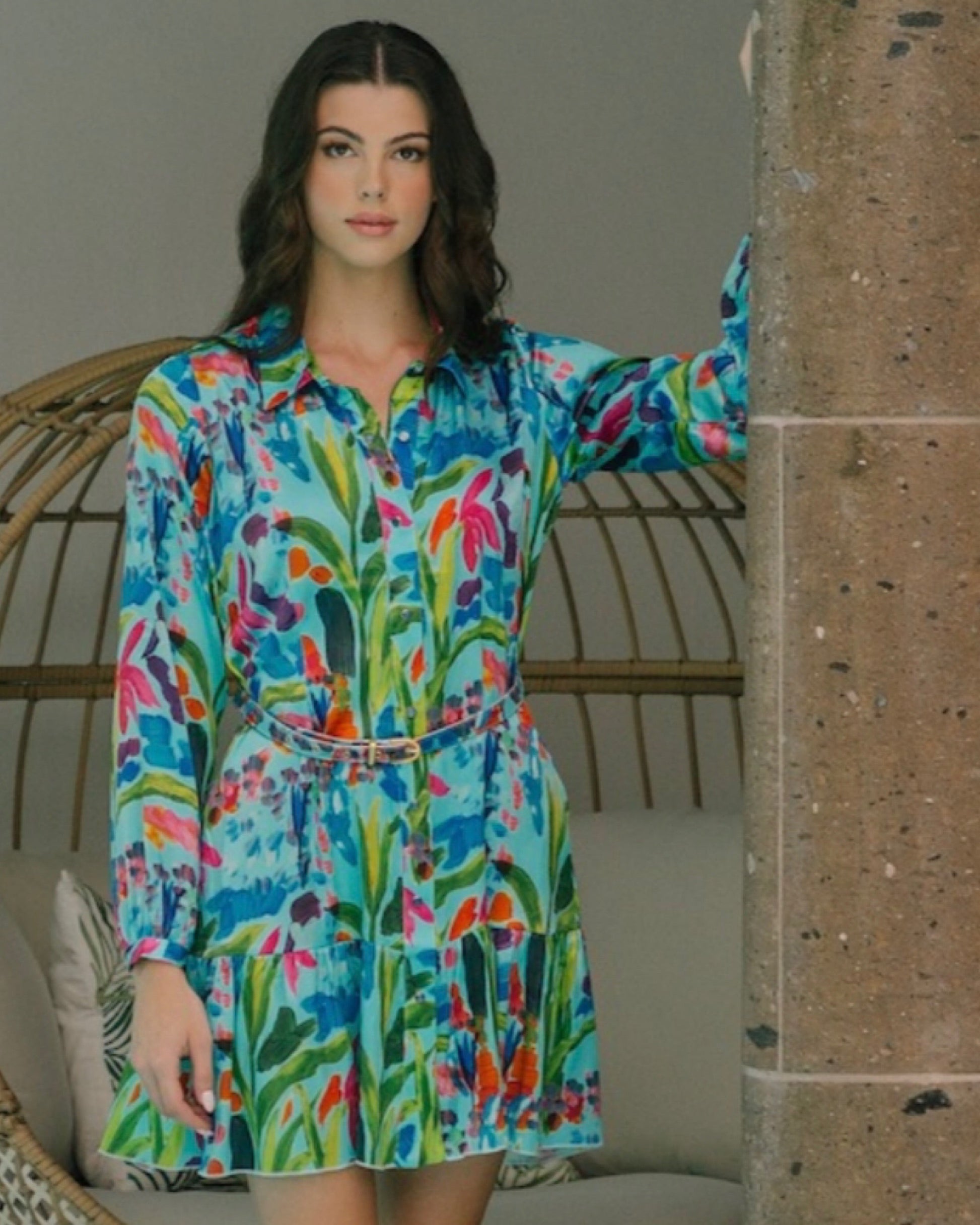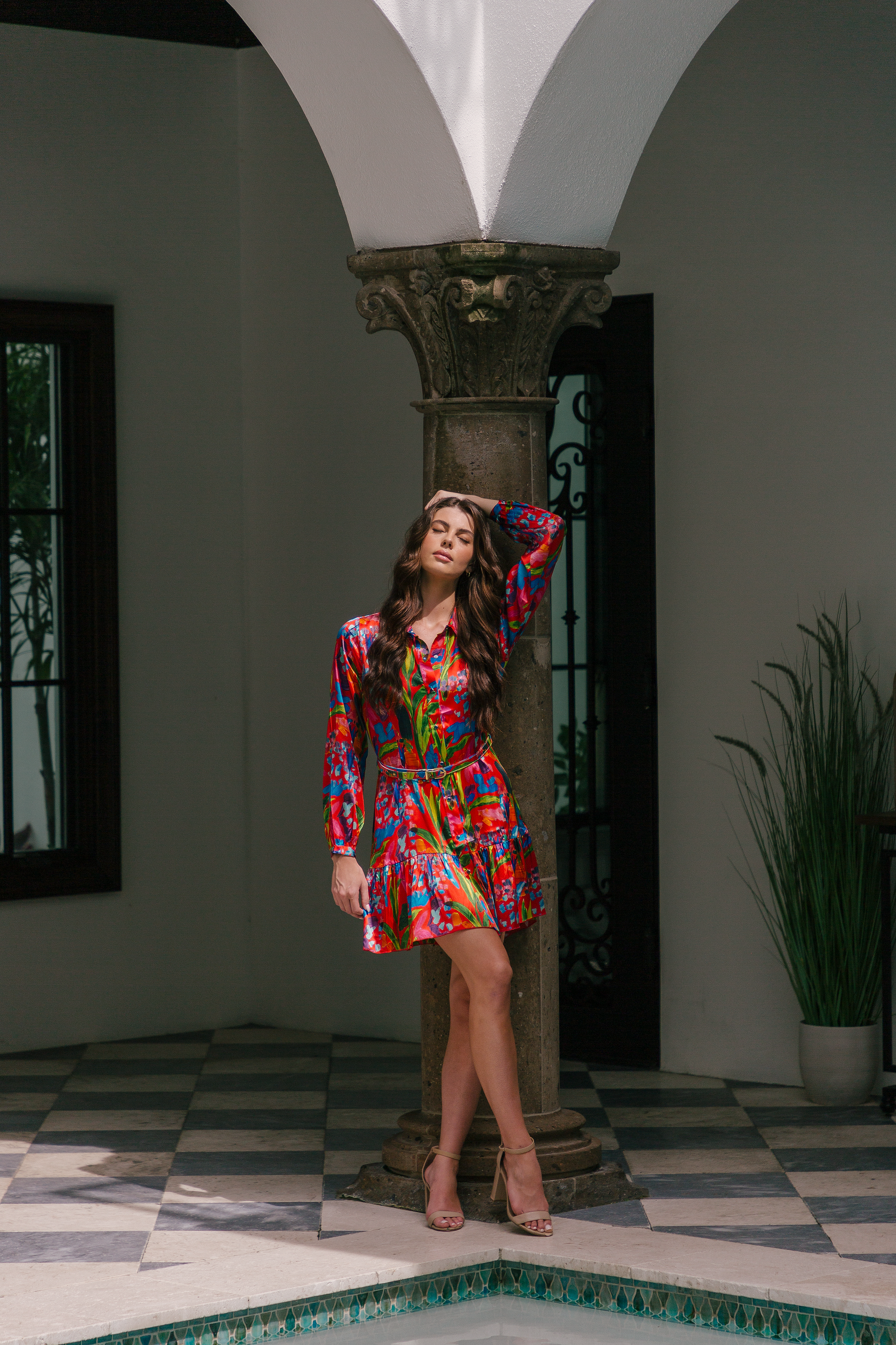 Envelop yourself in the exquisite Mia mini dress, expertly crafted from a lavish 93% silk blend. This timeless treasure enhances your curated wardrobe with its distinguished refinement and sublime elegance, complemented by an accompanying belt for impeccable silhouette definition.